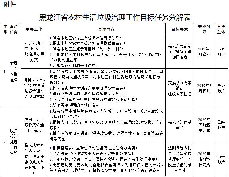 日前,黑龍江省發(fā)布了《黑龍江省農(nóng)村生活垃圾治理專項實施方案(2018—2020年)》《黑龍江省農(nóng)村室內(nèi)戶廁改造及室外公共廁所建設(shè)專項實施方案(2018—2020年))》和《黑龍江省農(nóng)村室外衛(wèi)生戶廁改造三年行動專項實施方案(2018—2020年)》,詳情如下:黑龍江省人民政府辦公廳關(guān)于印發(fā)黑龍江省農(nóng)村...