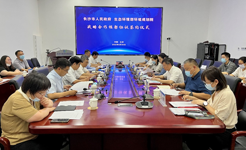 2022年6月30日,環(huán)境規(guī)劃院與長(zhǎng)沙市人民政府簽署生態(tài)環(huán)境保護(hù)工作戰(zhàn)略合作框架協(xié)議。環(huán)境規(guī)劃院陸軍書記、王金南院長(zhǎng)、萬軍總工、嚴(yán)剛副院長(zhǎng)、各部門代表,長(zhǎng)沙市人民政府劉匯副市長(zhǎng),長(zhǎng)沙市生態(tài)環(huán)境局潘勝強(qiáng)局長(zhǎng)、趙玲芳副局長(zhǎng)等相關(guān)負(fù)責(zé)同志出席簽約儀式。 簽約儀式前,雙方開展了座談交流。長(zhǎng)沙市生態(tài)環(huán)境局對(duì)環(huán)...