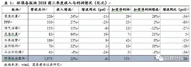 摘要危廢、固廢與監(jiān)測(cè)板塊維持強(qiáng)勁增長2018前三季度環(huán)保行業(yè)整體①營業(yè)收入1073億元,同比增長23%,增速同比回落6pct,Q3單季收入391億元,同比增15%;②前三季度環(huán)保板塊實(shí)現(xiàn)扣非凈利潤131億元,同比增7%,增速同比回落26pct,Q3單季扣非凈利潤50億元,同比增1%,增速回落29pc...