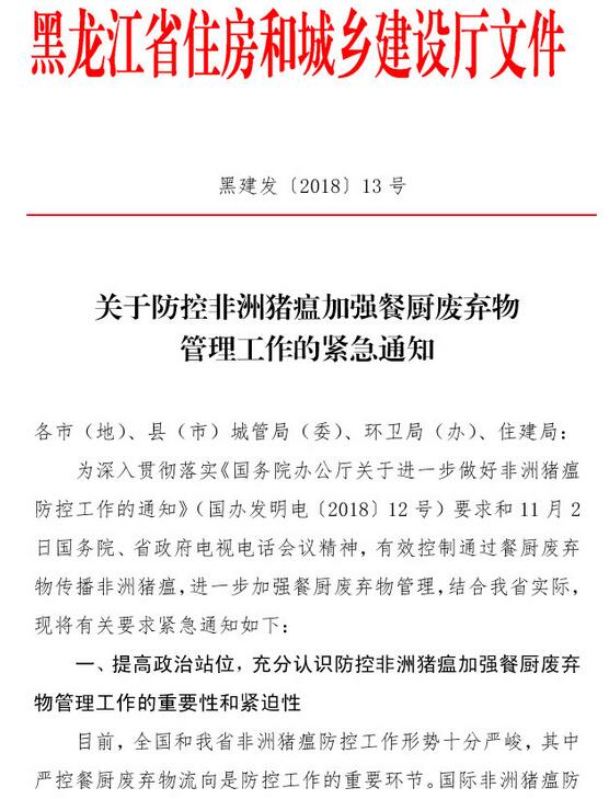 為進(jìn)一步做好非洲豬瘟防控工作,切斷病原傳播途徑,根據(jù)《中華人民共和國畜牧法》《中華人民共和國農(nóng)業(yè)農(nóng)村部公告》(第64號(hào))、《城市生活垃圾管理辦法》和《貴州省農(nóng)產(chǎn)品質(zhì)量安全管理?xiàng)l例》規(guī)定,市人民政府決定在全市范圍內(nèi),不得使用餐廚廢棄物(泔水)飼喂生豬,現(xiàn)將有關(guān)事宜通告如下:一、本市行政區(qū)域內(nèi)產(chǎn)生、收集...
