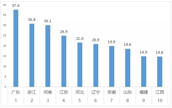 截止2018年9月30日,2018年度前九個月的全國新簽?zāi)曩M總額高達(dá)355億,比2017年全年總額高出37億。的高速增長,除了廣東、浙江、山東等傳統(tǒng)環(huán)衛(wèi)大省持續(xù)發(fā)力外,安徽、河南、河北、江西等新興環(huán)衛(wèi)大省的迅速崛起,更是蔚為壯觀……前十省份新簽項目年費占全國總額的66% 截止2018年9月30日,新...