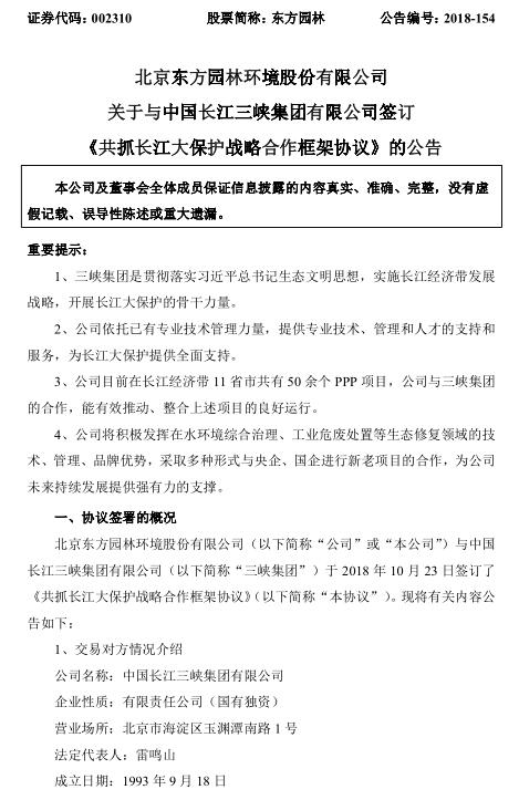 10月24日,公告,公司與長江簽訂《共抓長江大保護(hù)戰(zhàn)略合作框架協(xié)議》,雙方將通過多種合作模式,推動(dòng)長江經(jīng)濟(jì)帶綠色產(chǎn)業(yè)經(jīng)濟(jì)運(yùn)營合作;目前東方園林在長江經(jīng)濟(jì)帶11省市共有50余個(gè),與三峽集團(tuán)合作,并加入長江生態(tài)環(huán)保產(chǎn)業(yè)聯(lián)盟,能有效推動(dòng)這些項(xiàng)目的良好運(yùn)行。延伸閱讀: