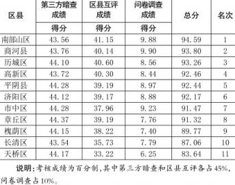 市城管委辦公室日前發(fā)布《關(guān)于9月份濟(jì)南市專(zhuān)項(xiàng)考核成績(jī)的通報(bào)》(排名見(jiàn)下表),11個(gè)區(qū)縣(含濟(jì)南高新區(qū)、南部山區(qū))考核成績(jī)中,南部山區(qū)獲得第一名,天橋區(qū)獲得最后一名。9月27日至28日,濟(jì)南市城管局通過(guò)組織第三方暗查、區(qū)縣互評(píng)、問(wèn)卷調(diào)查的方式,對(duì)濟(jì)南市11個(gè)區(qū)縣(含濟(jì)南高新區(qū)、南部山區(qū))城鄉(xiāng)環(huán)衛(wèi)一體化...