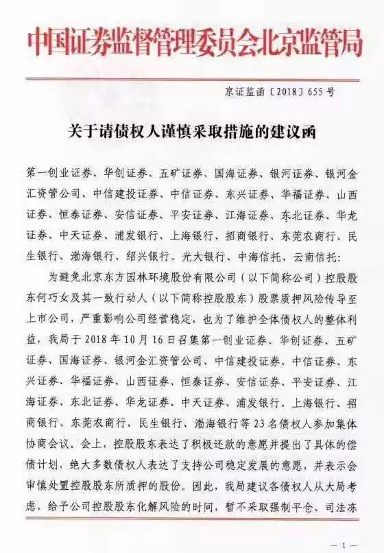 最近空降熱搜的企業(yè)中,有兩家公司成功吸引了天眼妹的目光。一家公司超級(jí)“大牌”,陷入股票質(zhì)押危機(jī)后,居然能震動(dòng)北京證監(jiān)局出手相救;另一家公司更慘,法人和第一大股東因積壓的債務(wù)危機(jī)爆發(fā)被列為失信被執(zhí)行人。巧合的是,這兩家企業(yè)都是曾經(jīng)以“股王”“不差錢(qián)”等形象行走A股的?!本┳C監(jiān)局給債權(quán)人的建議函東方園...