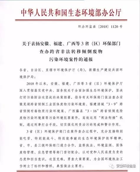 因指導(dǎo)有關(guān)環(huán)保部門(mén)依法查辦蕪湖跨省傾倒污染環(huán)境案,為全國(guó)環(huán)境執(zhí)法工作樹(shù)立了標(biāo)桿和榜樣,近日,安徽環(huán)保廳被生態(tài)環(huán)境部辦公廳通報(bào)表?yè)P(yáng)。通報(bào)指出,2018年以來(lái),安徽、福建、廣西等3省(區(qū))環(huán)境保護(hù)廳深入貫徹落實(shí)黨中央、國(guó)務(wù)院關(guān)于全面加強(qiáng)生態(tài)環(huán)境保護(hù),堅(jiān)決打好污染防治攻堅(jiān)戰(zhàn)的決策部署,指導(dǎo)有關(guān)環(huán)保部門(mén)依法...