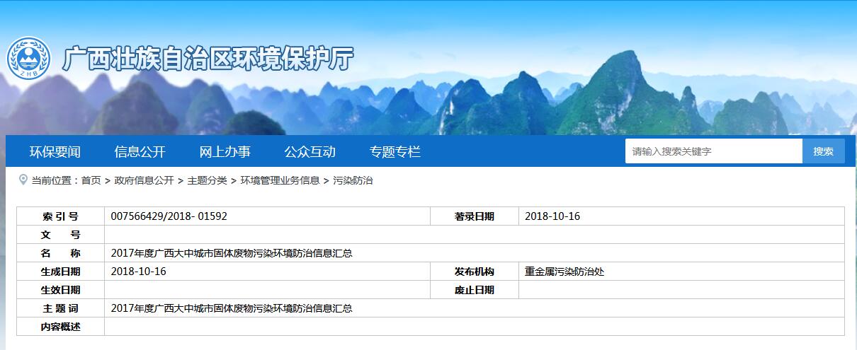 日前,環(huán)保廳公布了2017年度廣西大中城市環(huán)境防治信息匯總情況,詳情如下:2017年度廣西大中城市固體廢物污染環(huán)境防治信息匯總根據(jù)《中華人民共和國固體廢物污染環(huán)境防治法》、《大中城市固體廢物污染環(huán)境防治信息發(fā)布導則》(原國家環(huán)境保護總局2006年第33號公告)的要求,我區(qū)南寧、柳州、桂林、梧州、北海...
