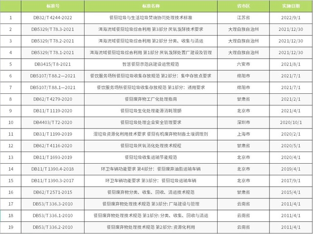 住建部正在就《廚余垃圾處理廠運(yùn)行監(jiān)管標(biāo)準(zhǔn)(征求意見(jiàn)稿)》公開征意,對(duì)監(jiān)管程序和要求、運(yùn)行過(guò)程、污染防治設(shè)施運(yùn)行效果、安全生產(chǎn)與勞動(dòng)保護(hù)、監(jiān)測(cè)管理、資料管理、日常運(yùn)行情況核填和記錄、處理廠運(yùn)行效果考核等進(jìn)行了相關(guān)規(guī)定。 截至目前,已備案的餐廚垃圾相關(guān)標(biāo)準(zhǔn)有《餐廚垃圾車》QC/T 935-2013、《餐...