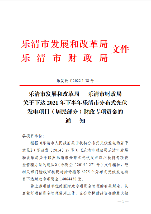 近日,浙江省樂清市發(fā)展和改革局發(fā)布《關于下達2021年下半年樂清市分布式光伏發(fā)電項目(居民部分)財政專項資金的通知》。詳情如下: 各項目單位: 根據(jù)《樂清市人民政府關于扶持分布式光伏發(fā)電的若干意見》(樂政發(fā)〔2014〕29號)、《樂清市財政局樂清市發(fā)展和改革局關于印發(fā)樂清市分布式光伏發(fā)電應用扶持專項...