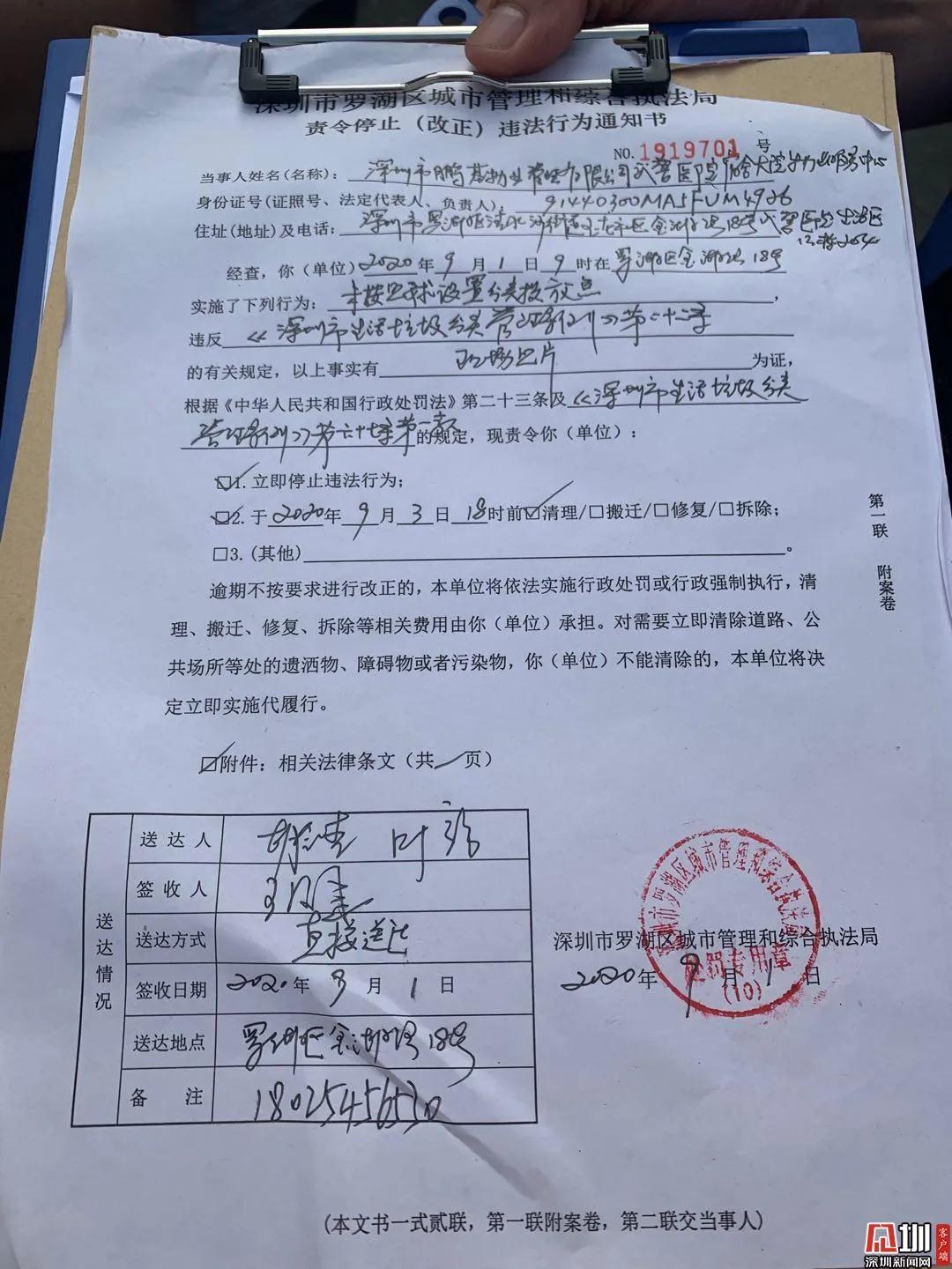 9月1日是《深圳市生活垃圾分類管理條例》實施的第一天,垃圾分類執(zhí)法檢查也同步啟動。早上,深圳市城管執(zhí)法人員就出動了。早上8時34分,在羅湖區(qū)的銀龍花園,深圳市城管和綜合執(zhí)法局聯合清水河街道執(zhí)法隊開出了首張責令整改通知書,小區(qū)的垃圾桶沒有集中擺放,包括大件垃圾沒有及時清運?!钲谑谐枪軋?zhí)法人員來到羅湖...