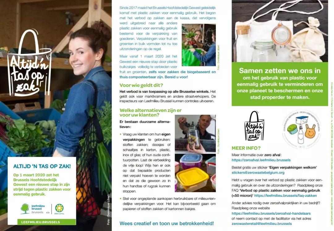 "ALWAYS A BAG IN POCKET!"(“請自備袋子!”)布魯塞爾環(huán)境部發(fā)出呼吁。布魯塞爾“新塑料袋禁令”的宣傳冊 據(jù)布魯塞爾時報報道,在比利時的布魯塞爾首都大區(qū),從 2020 年 3 月 1 日起,商店將全面禁止使用一次性塑料袋(厚度低于 50 微米的塑料袋,微米為...