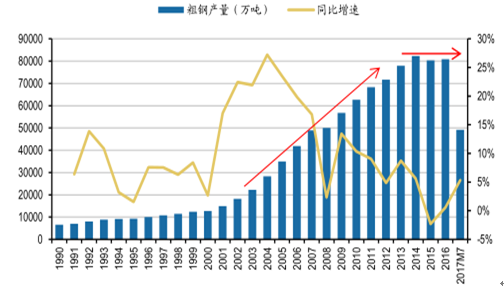 1、回收期疊加產(chǎn)能出清,供給進(jìn)入快速增長(zhǎng)軌道粗鋼產(chǎn)量達(dá)到頂峰,增長(zhǎng)面臨停滯。21世紀(jì)以來,伴隨著工業(yè)化和城市化進(jìn)程的加速,我國(guó)鋼鐵工業(yè)持續(xù)高速發(fā)展,2000-2013年鋼鐵產(chǎn)量的平均增長(zhǎng)速度高達(dá)14.2%,而世界平均水平僅5.2%。2014年,我國(guó)粗鋼產(chǎn)量達(dá)到峰值8.23億噸。其后的2015-201...