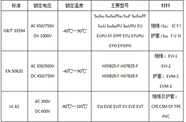 電動汽車充電用電纜作為新型電線電纜,其使用要求不同于傳統(tǒng)的電線線纜,目前,電動汽車充電用電纜國家標準已于2017年5月12日正式頒布,12月1日開始執(zhí)行。表1為全球各地區(qū)充電樁電纜的主要標準標準號。