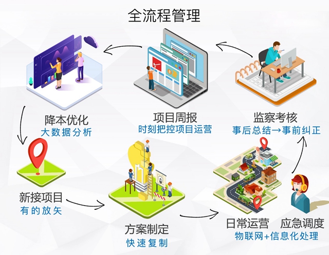 當(dāng)前,環(huán)衛(wèi)服務(wù)企業(yè)普遍存在成本高、過程亂、質(zhì)量差、風(fēng)險大、經(jīng)驗(yàn)缺的難題?;谧灾鳝h(huán)衛(wèi)車、全流程管理、全平臺應(yīng)用、靈活多變云平臺等獨(dú)特系統(tǒng)優(yōu)勢,宇通智慧環(huán)衛(wèi)云平臺直擊五大管理痛點(diǎn),全面應(yīng)用物聯(lián)網(wǎng)、云計算、GIS地理信息系統(tǒng)、移動互聯(lián)網(wǎng)技術(shù)和大數(shù)據(jù)等前沿技術(shù),基于SaaS模式為用戶提供從成本、過程、質(zhì)量、風(fēng)險和經(jīng)驗(yàn)積累等多個方面運(yùn)營管理服務(wù),實(shí)現(xiàn)從項(xiàng)目承接、方案定制、日常運(yùn)營、應(yīng)急調(diào)度、監(jiān)察考核、項(xiàng)目周報到降本優(yōu)化的環(huán)衛(wèi)業(yè)務(wù)全生命流程管控,優(yōu)化管理流程,簡化工作強(qiáng)度,降低對項(xiàng)目經(jīng)理經(jīng)驗(yàn)的依賴,讓初級水平的項(xiàng)目經(jīng)理都能看得到、講得清、管得好。