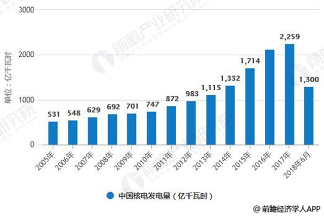 2005-2018年6月中國核電發(fā)電量統(tǒng)計情況