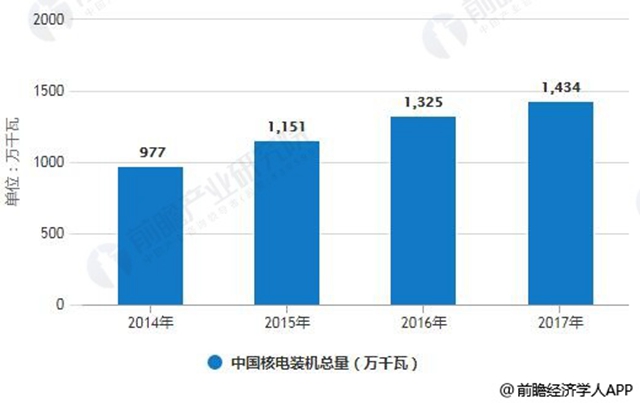 2014-2017年中國核電裝機總量統(tǒng)計情況