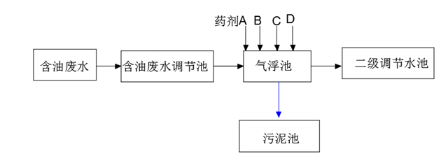 對含油廢水(除油第一道水洗+除油第一、第二道水洗)處理工藝具體流程如下圖所示