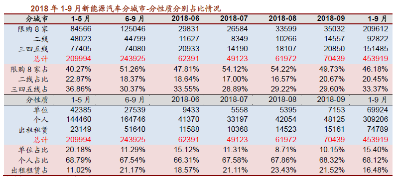 需求端來看,19年開始新產(chǎn)品集中上市,“爆款車”成為核心看點(diǎn)。產(chǎn)品結(jié)構(gòu)逐漸上移,新能源汽車個(gè)人消費(fèi)有望崛起。隨著政策傾向高續(xù)航車型疊加車企加碼布局,18下半年已經(jīng)有一些旗艦車型上市,如上汽榮威Marvel X、比亞迪唐二代等,新車型在動(dòng)力性能上遠(yuǎn)超燃油車,同時(shí)在智能駕駛輔助配置上也更為全面,其中如比亞迪唐二代插電混動(dòng)版本也率先上量,10月完成月銷量6000臺(tái)以上,52%賣在非限購城市,得到消費(fèi)者青睞。我們認(rèn)為,隨著新車型的持續(xù)推出,產(chǎn)品結(jié)構(gòu)不斷上移,一些產(chǎn)品已經(jīng)具備對(duì)比傳統(tǒng)汽車優(yōu)勢(shì),如A0級(jí)別比亞迪元EV,定價(jià)8-12萬,續(xù)航300km以上,目前月銷量已經(jīng)達(dá)到接近6000臺(tái),49%賣在非限購城市。隨著具備競(jìng)爭力車型陸續(xù)推出, 19 年有望出現(xiàn)年有望出現(xiàn) “爆款車”,個(gè)人消費(fèi)有望崛起。