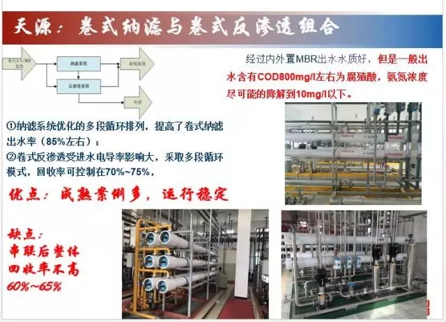 處理工藝:滲濾液采用 “預(yù)處理+兩級A/O+外置 式管式膜+NF/RO”的組合工藝,MBR系統(tǒng)采用了外置式MBR技術(shù) 。
