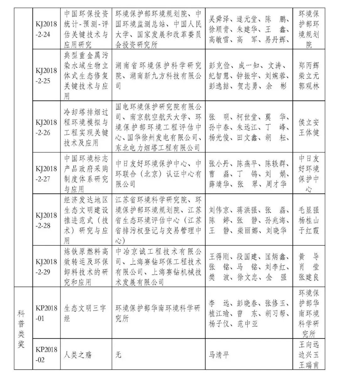 關于2018年度環(huán)境保護科學技術獎擬授獎項目的公示
