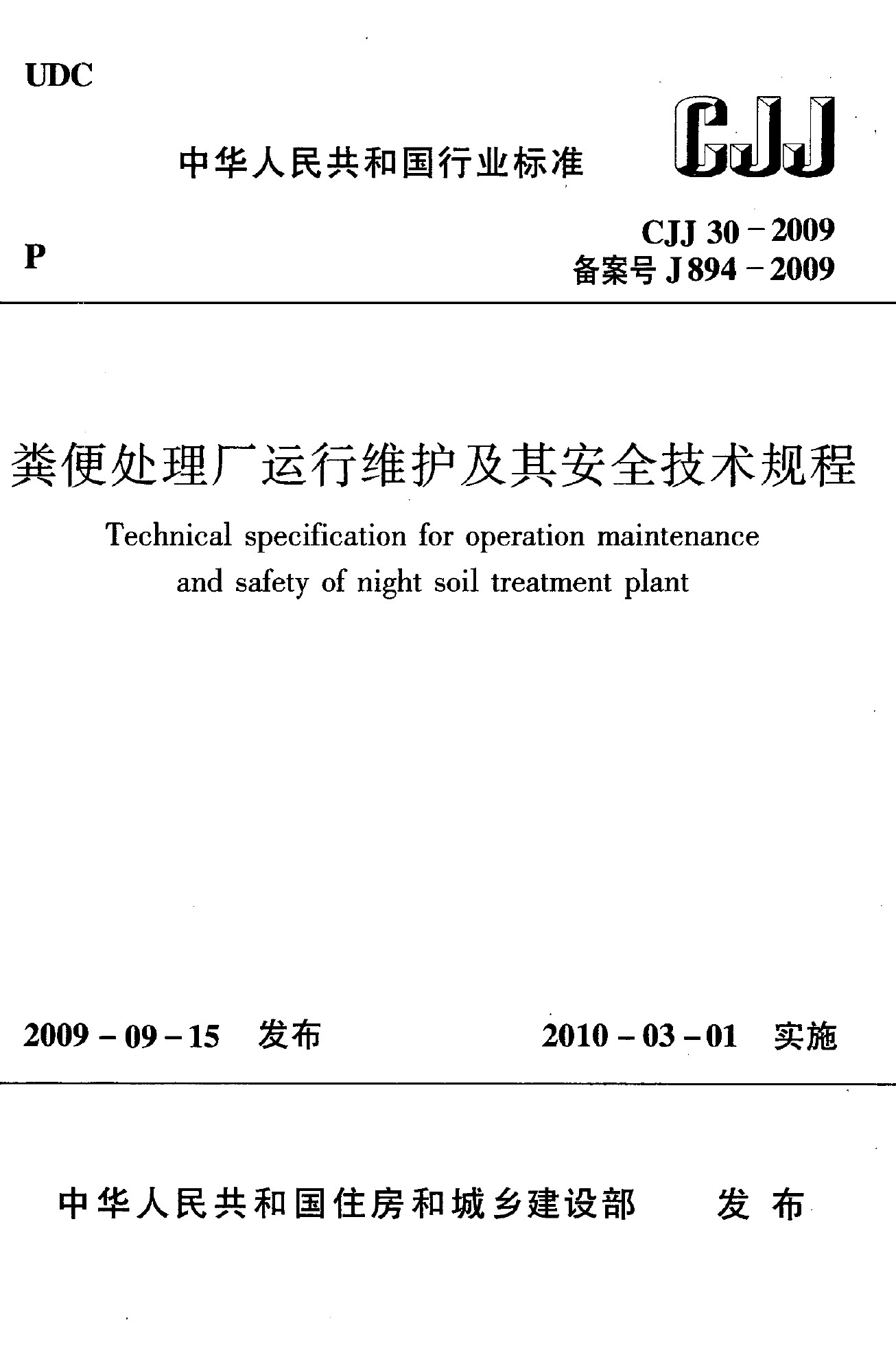 糞便處理廠運(yùn)行維護(hù)及其安全技術(shù)規(guī)程(CJJ 30-2009)