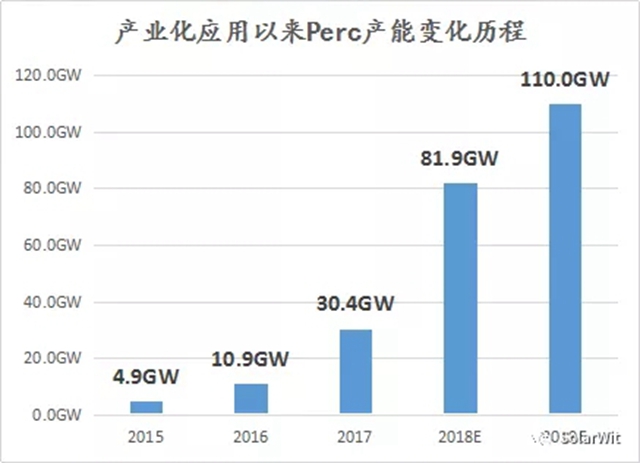 由于2019年需求很旺盛,而當(dāng)前價(jià)格下臺(tái)灣電池產(chǎn)能無(wú)法有效運(yùn)轉(zhuǎn),所以在當(dāng)前價(jià)格下,大陸地區(qū)的電池片產(chǎn)能也是相對(duì)緊缺的。電池片不能囤積庫(kù)存,所以當(dāng)需求不好的時(shí)候率先跌價(jià),當(dāng)需求旺盛的時(shí)候率先漲價(jià),對(duì)行業(yè)終端需求變化更加敏感,由于目前單晶perc售價(jià)為1.28元/W;多晶電池的售價(jià)0.88元每瓦,兩者價(jià)格差高達(dá)0.4元,偏大,下游承受能力低,預(yù)期在2019年2月前后perc電池片價(jià)格有望回調(diào)到1.1元的位置(此價(jià)格下電池廠依舊可以保持較好盈利)。全年來(lái)看,電池片還是片緊缺的,大家的擴(kuò)產(chǎn)步伐也不會(huì)停下來(lái)。2019年底,單晶Perc的產(chǎn)能有可能達(dá)到110GW。