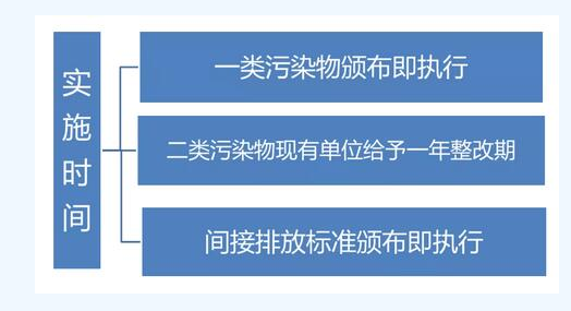 所有排污單位的第一類污染物自2018年12月1日起執(zhí)行,直接排放的二類污染物的,新建單位自2018年12月1日,現(xiàn)有單位自2019年12月1日起執(zhí)行,2019 年 12 月 1 日之前執(zhí)行原標(biāo)準(zhǔn) DB 31/199-2009 的排放限值,間接排放自2019年12月1日起執(zhí)行。