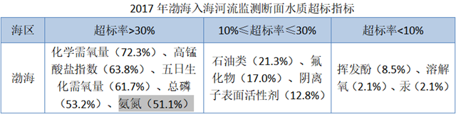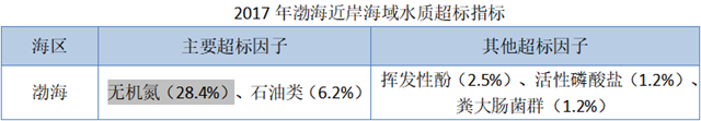 無機氮是渤海近岸海域超標率最高的超標因子。根據(jù)生態(tài)環(huán)境部發(fā)布的《2017中國近岸海域生態(tài)環(huán)境質(zhì)量公報》數(shù)據(jù)顯示,渤海近岸海域無機氮平均濃度為0.252毫克/升,點位超標率為28.4%。是超標率最高的超標因子。(總氮包括無機氮)