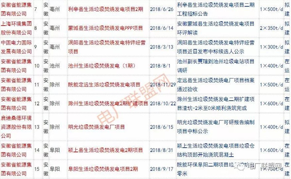 2018年新投入運行的生活垃圾焚燒廠超過70座,在建項目166座,擬建項目201座.具體項目名單如下: