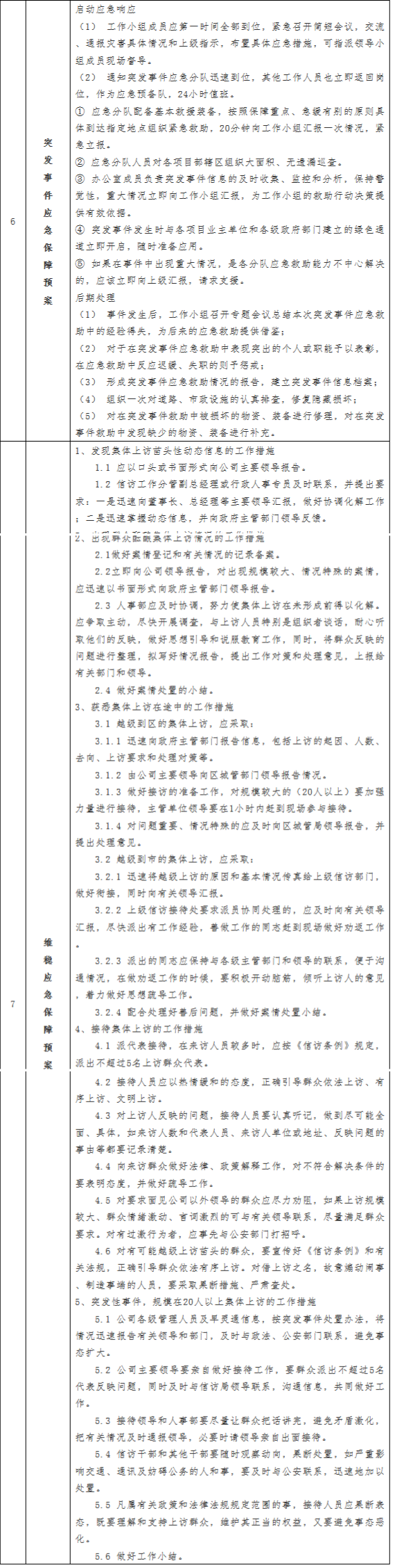 3、公司設立四個工作小組,分別為現(xiàn)場施救工作小組、后勤保障工作小組、善后工作小組、事故調(diào)查工作小組。成員由分管領導和相關部門人員組成。
