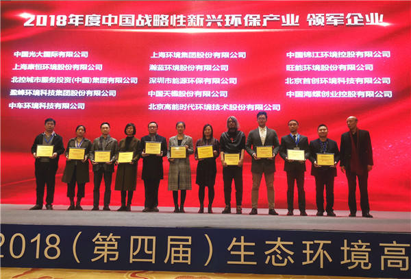 中國(guó)錦江環(huán)境控股有限公司 榮獲 2018年度中國(guó)戰(zhàn)略性新興環(huán)保產(chǎn)業(yè) 領(lǐng)軍企業(yè)