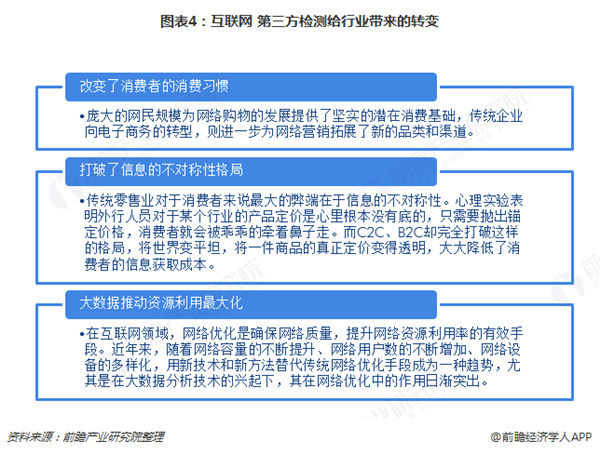 踏著互聯(lián)網(wǎng)發(fā)展的春風,我國第三方檢測機構(gòu)也開始互聯(lián)網(wǎng)化轉(zhuǎn)型之路,積極利用大數(shù)據(jù)推動資源利用的最大化,擴大消費者對于第三方檢測行業(yè)的認知,從而擴大下游需求的增長。