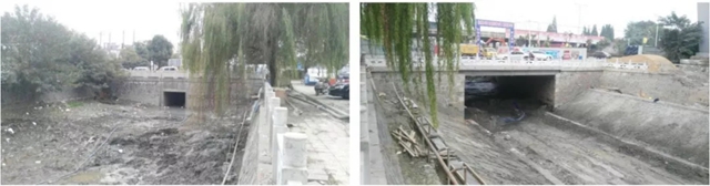 小運(yùn)河沿線存在工業(yè)企業(yè)、居住小區(qū)、城中村、商鋪等,大量污水進(jìn)入河道,加上常年被違章建筑非法侵占、缺乏疏浚管護(hù)、過水涵閘斷面狹小等原因,河道淤積嚴(yán)重,河水嚴(yán)重發(fā)黑發(fā)臭。小運(yùn)河相關(guān)支河污染也比較嚴(yán)重,整體質(zhì)態(tài)不容樂觀。經(jīng)實(shí)地調(diào)查,小運(yùn)河及其支河沿線共有排口294處,其中106處有污水下河,具體為:污廢水直排口71處(生活污水排口55處、工業(yè)污水排口16處),雨水管道混接排污口26個,雨污合流排污口9個。根據(jù)公眾調(diào)查和水質(zhì)檢測情況,認(rèn)定小運(yùn)河屬于城市建成區(qū)內(nèi)重度黑臭水體。