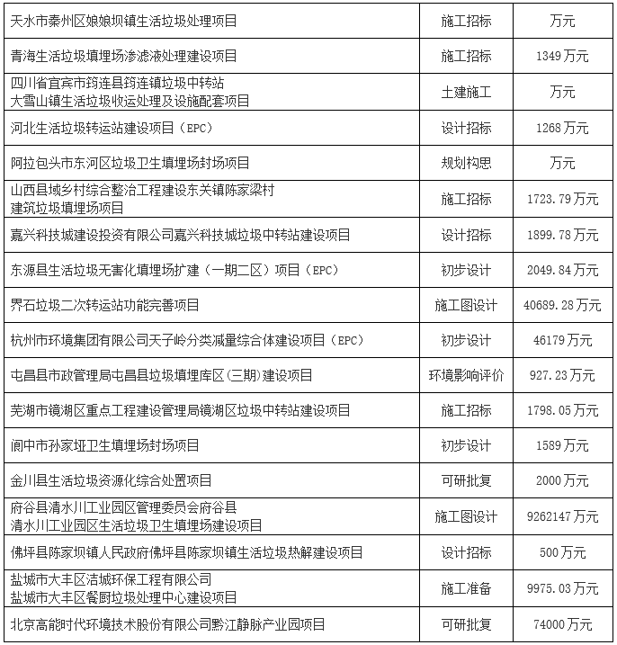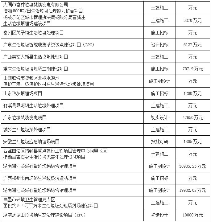 2019年1月份全國擬在建垃圾處理項目,詳情如下: