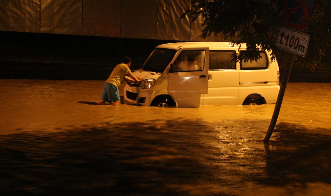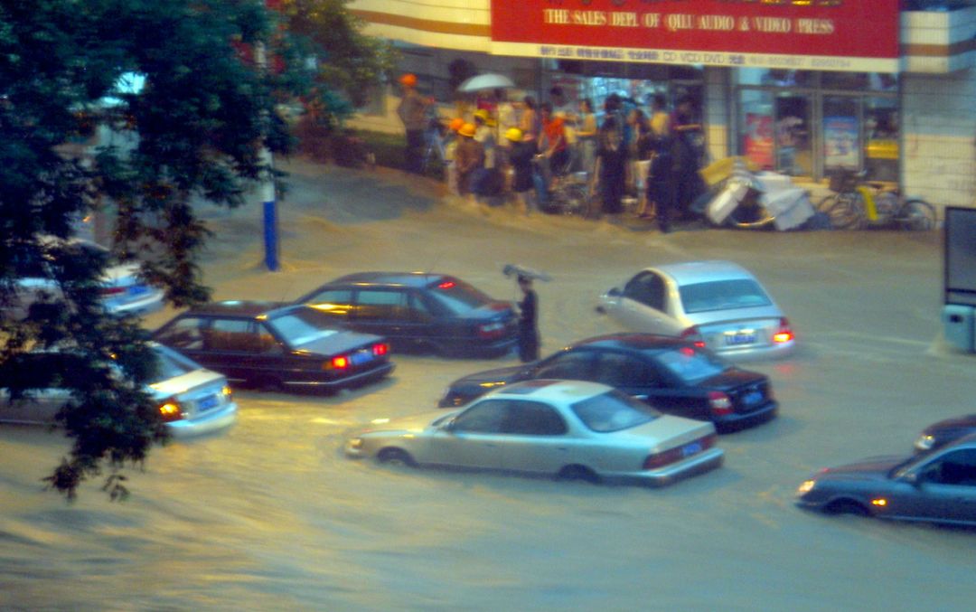 這是2007年,濟(jì)南的一場(chǎng)暴雨。151毫米的雨水,一到兩個(gè)小時(shí)內(nèi),嘩一下都下來(lái)了,在馬路上形成一道道洪水。很多車被沖散了,也有人失去了生命。