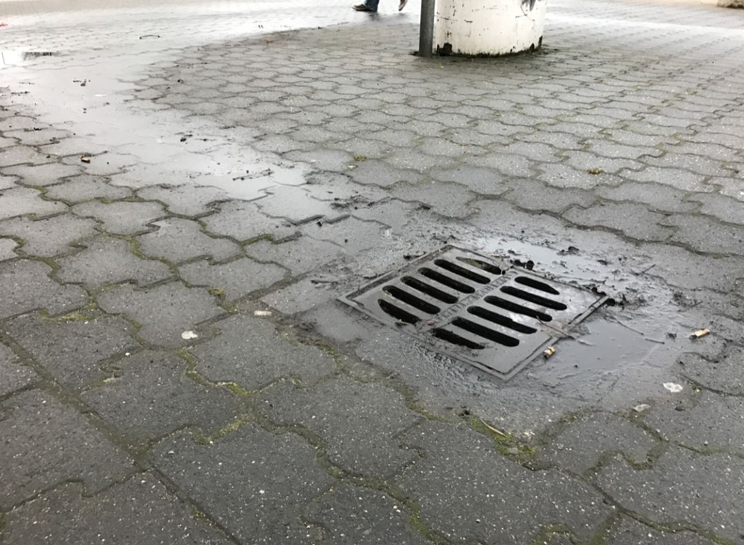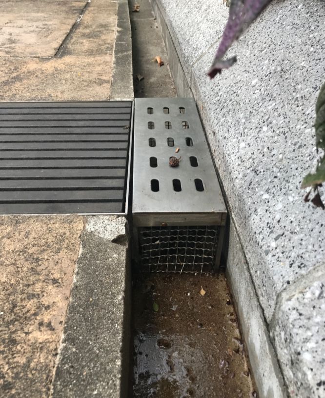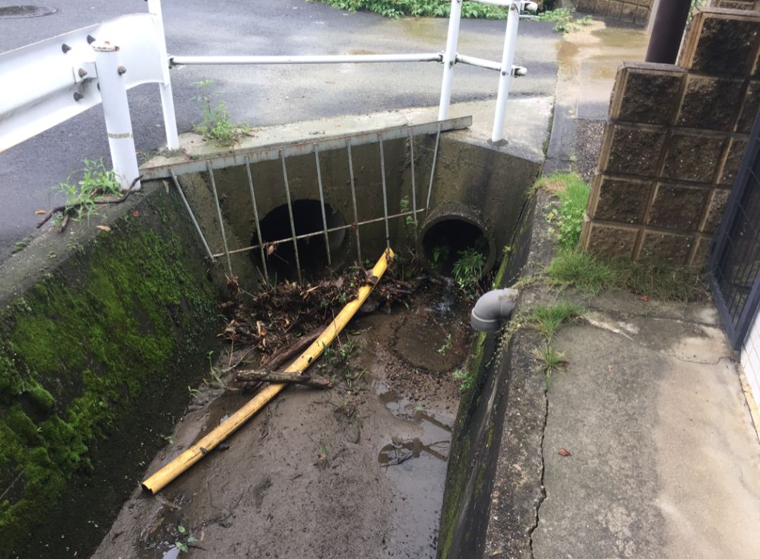 這是我們?cè)诰┒寂牡降囊粋€(gè)溝。這種溝我們?cè)谌毡窘?jīng)??吹?,國(guó)內(nèi)已經(jīng)慢慢看不到了。地面的水會(huì)流到這個(gè)雨水口,再流到溝渠里。最簡(jiǎn)單的方法就是放一個(gè)擋板,把垃圾存在這兒,再定期去清理它。