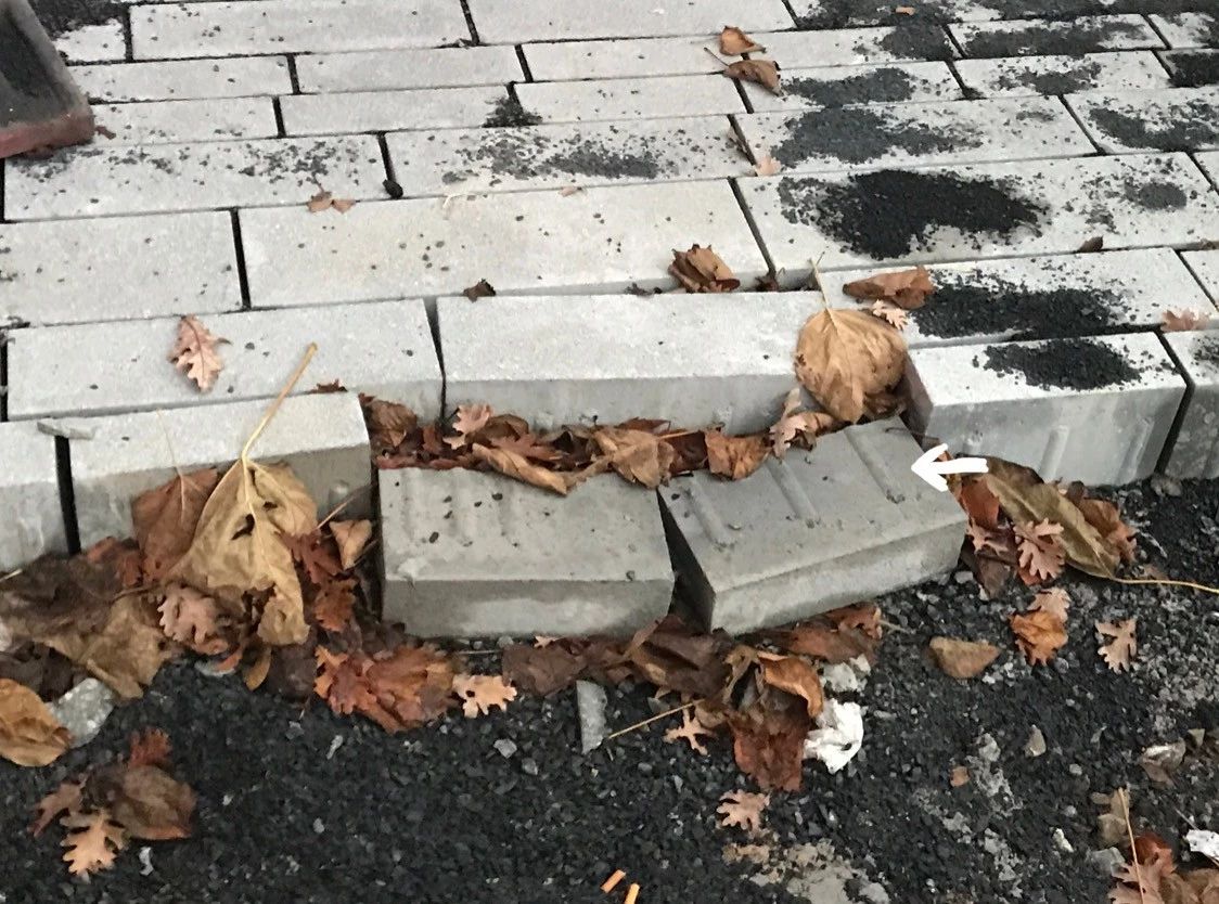 看著好像是普通的磚,但實(shí)際上磚和磚之間有凸起的窄條,這樣一來(lái)兩塊磚無(wú)法完全貼合,下雨時(shí)水可以從中間滲下去,盡可能地滲透。這也是很重要的一類排雨水設(shè)施。