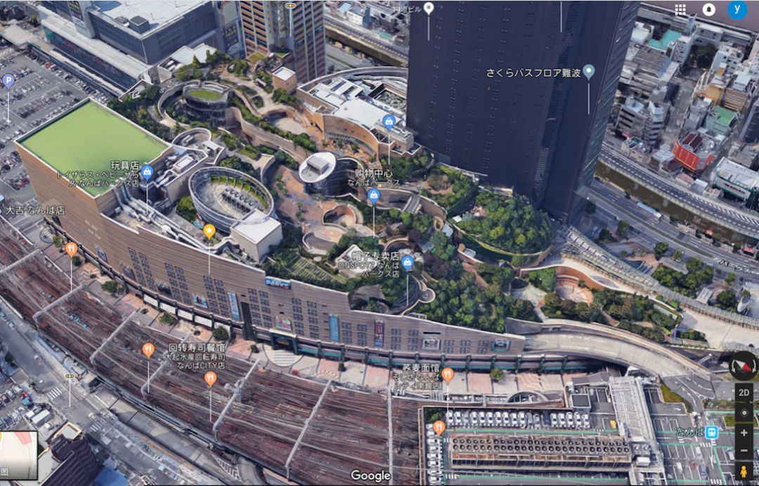 接下來(lái)看我們的鄰國(guó),日本。難波的這個(gè)項(xiàng)目在日本大阪,大家看到的是一個(gè)購(gòu)物中心。我強(qiáng)烈建議大家,游覽的時(shí)候從一樓走到七樓,這是一個(gè)屋頂綠化獲獎(jiǎng)的項(xiàng)目。