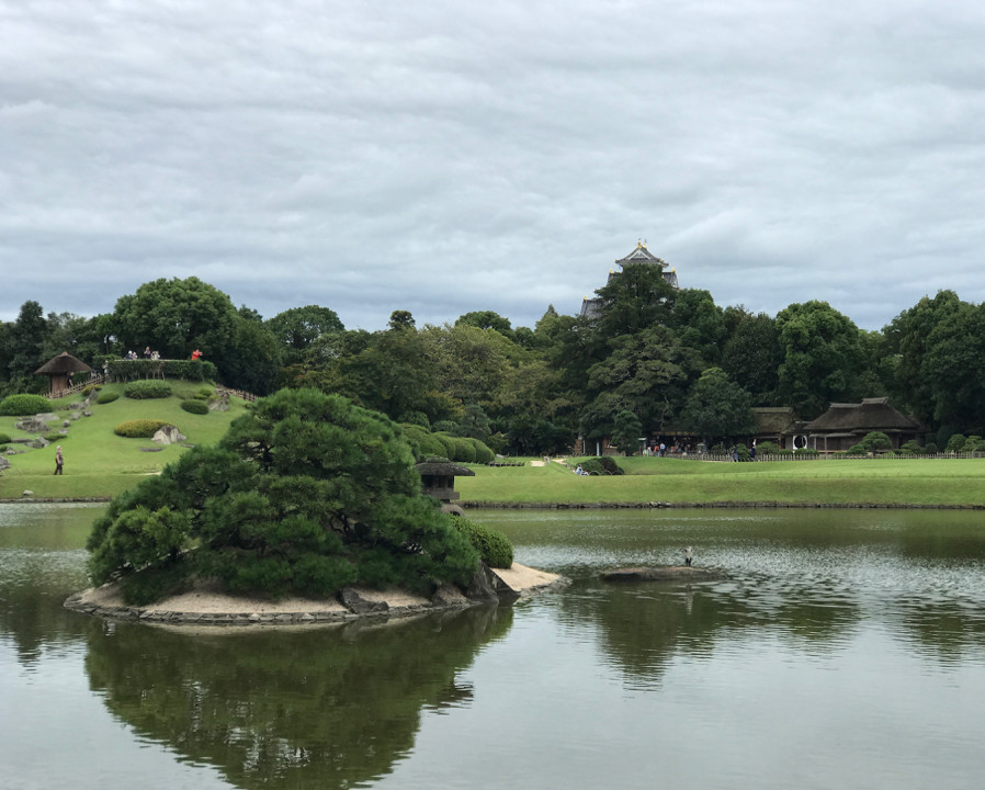 我們看了密集的城區(qū)以后,還去了岡山后樂(lè)園,是一個(gè)著名的古典園林。日本很多園林里都有碎石沙子鋪成的小路,我們當(dāng)時(shí)一直在想,下雨的話要怎么去清理這些石頭?因?yàn)榍謇砗拖礈焓^是很麻煩的。