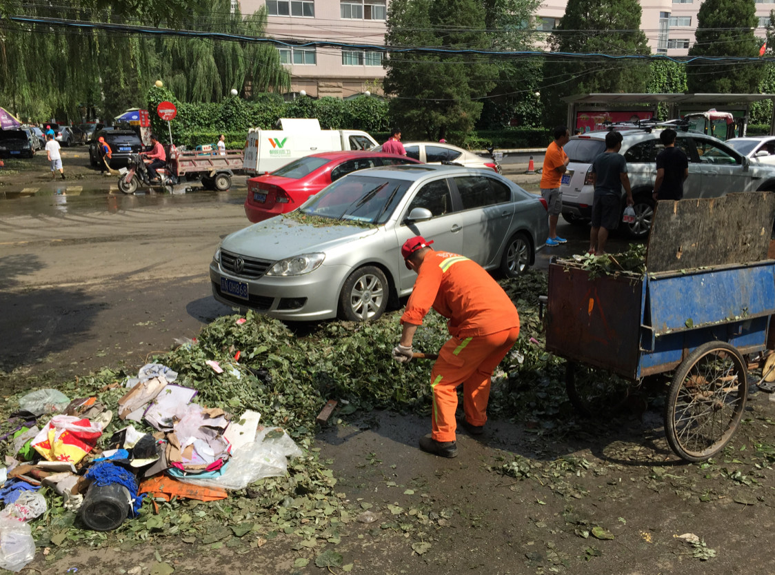 這是第二天我們家門(mén)口的情況。環(huán)衛(wèi)工人清出來(lái)的這么多垃圾,就來(lái)自一個(gè)小小的雨水口。我管道設(shè)計(jì)得再大,一半都被垃圾給堵掉了,那管道能發(fā)揮多大作用?