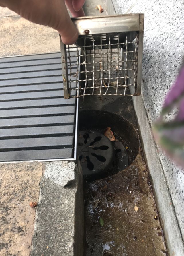 我們看到它的雨水口,里面有一個(gè)鐵桶,桶底有很多漏孔,所有的石頭會(huì)留在鐵桶里。他們把這個(gè)雨水口打開(kāi),桶提出來(lái),就可以把石頭倒出去,清理干凈了再放回去。