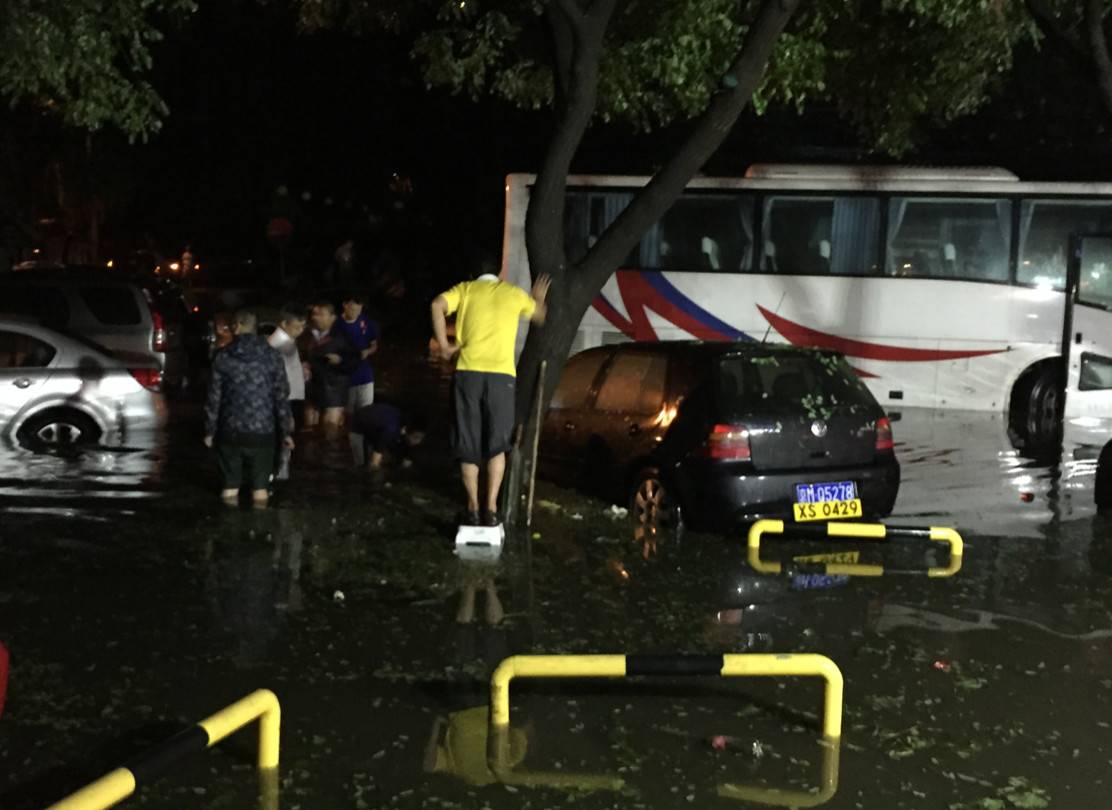 這是2015年8月7日北京的一次降雨。那天我跟太太去討論我們的婚宴,結(jié)束之后回家的路上,開(kāi)始下冰雹,下大雨。我們一直走了四公里,到家門(mén)口發(fā)現(xiàn)周邊的整個(gè)區(qū)域全被淹了。