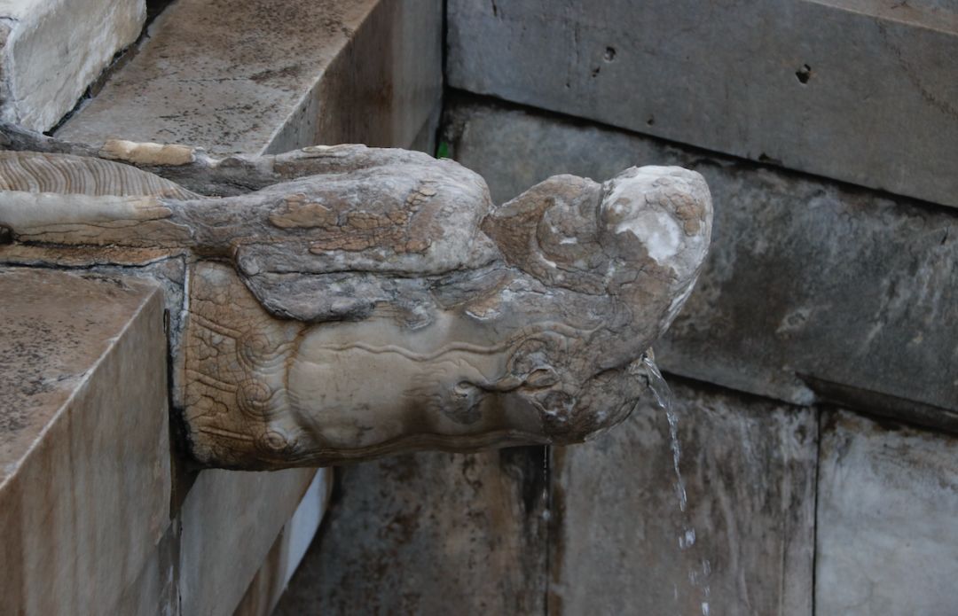 故宮的水會(huì)排到護(hù)城河,他們挖那個(gè)河也是為了有排水的道。甚至后邊的什剎海公園,相關(guān)的河道連通,都是為了把水排走。我們看到故宮那個(gè)龍吐水的排水管道很驚異,但其實(shí)不積水的主要原因,是它有很多路面的漫流通道。