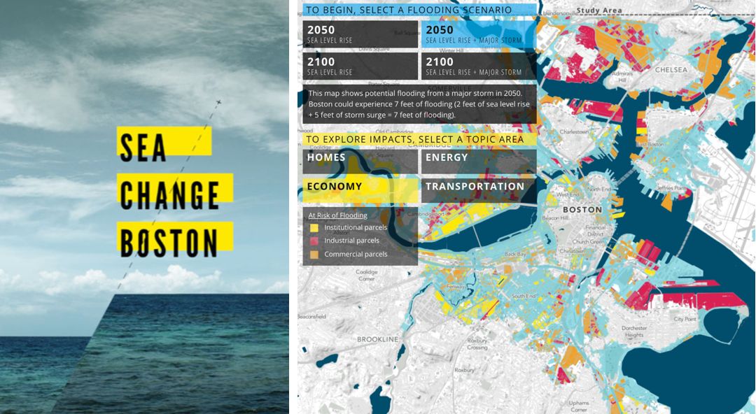 這是一個(gè)叫SASAKI的景觀公司,臺(tái)風(fēng)之后給波士頓做的新規(guī)劃。他們認(rèn)為一百年后潮水會(huì)頂上來(lái),同時(shí)會(huì)有更極端的暴雨,城市在這樣雙重壓力的擠壓下,是負(fù)擔(dān)不了現(xiàn)在的功能的。所以需要知道城市里哪個(gè)地方是安全的,哪個(gè)地方人是要遷走的。