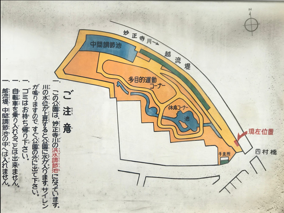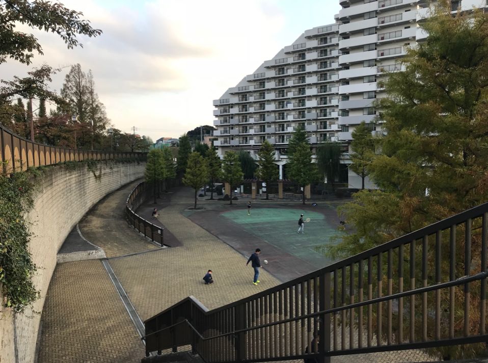 這是妙正寺川整個(gè)小區(qū)的一層,這一層平時(shí)就是一個(gè)活動(dòng)空間,有人去踢球,有人去玩,但是真正暴雨下來(lái)的時(shí)候就會(huì)馬上全部被淹掉。