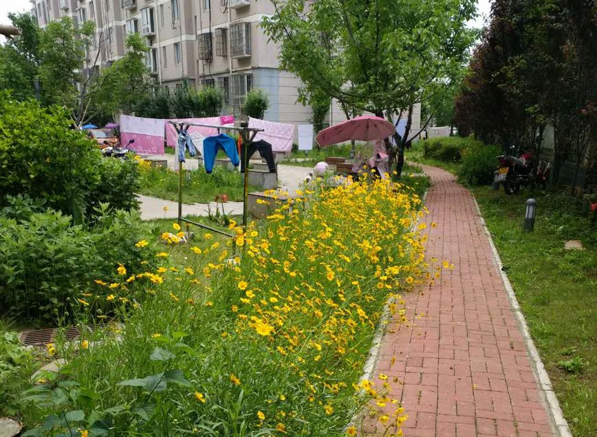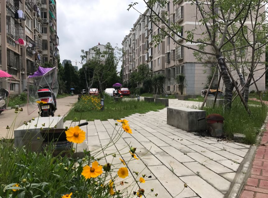 我們?cè)扔X(jué)得這個(gè)情況還挺糟糕的,但到了第三年的時(shí)候,發(fā)現(xiàn)位置做得不對(duì)的雨水花園消失了,位置對(duì)的留下來(lái)了,大家還挺愿意用。慢慢地這個(gè)小區(qū)變成了現(xiàn)在這樣,它不是我們理想中的狀態(tài),但確實(shí)起到了很大作用,最終我們的設(shè)施和居民相互融合了。