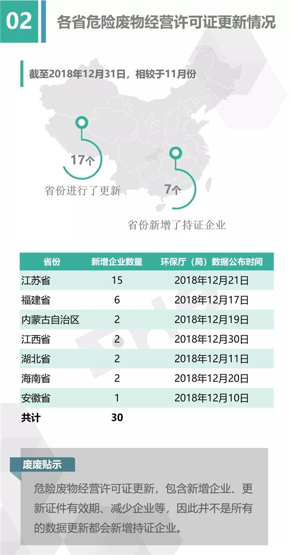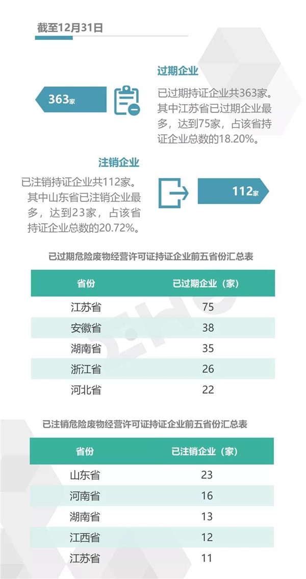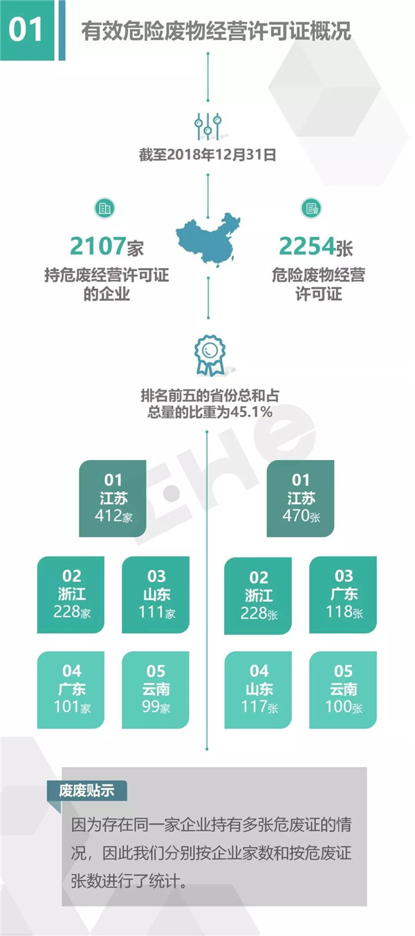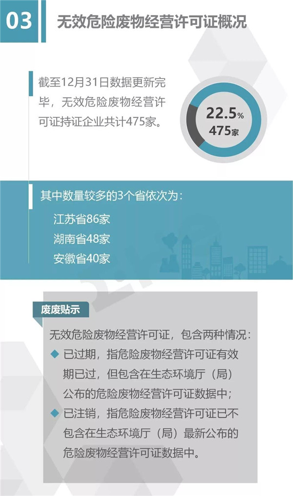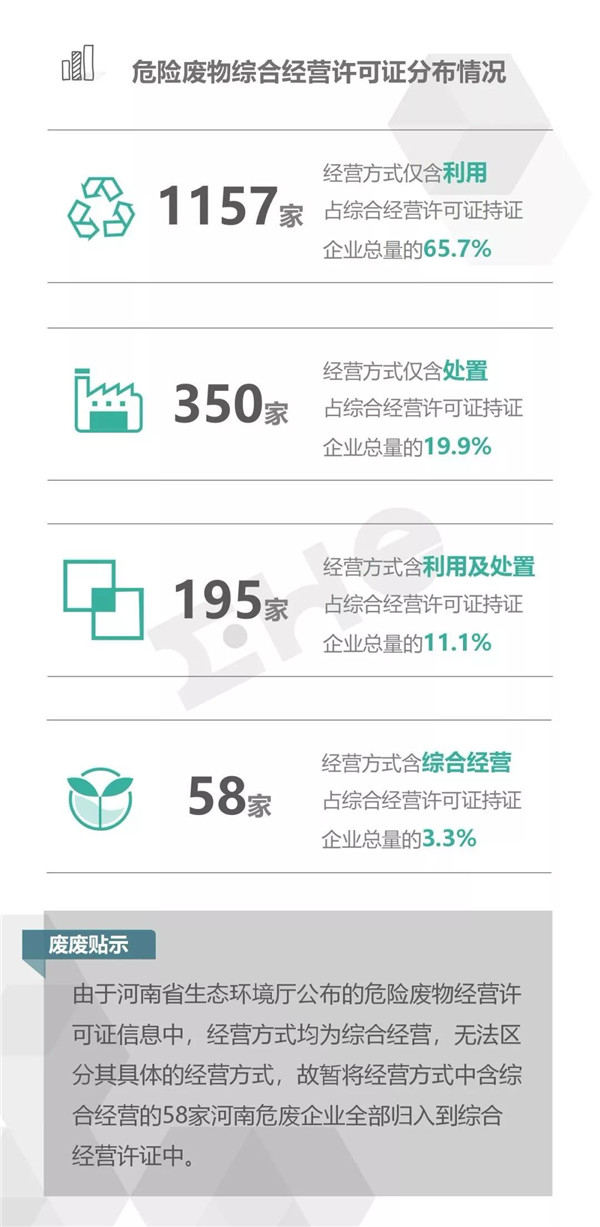 2.統(tǒng)計范圍:本次數(shù)據(jù)收集統(tǒng)計的范圍為省級生態(tài)環(huán)境廳(局)官方公布的持有危險廢物經(jīng)營許可證企業(yè)的數(shù)據(jù),因此由地級市發(fā)布的醫(yī)療廢物經(jīng)營許可證、收集經(jīng)營許可證,且未納入省級生態(tài)環(huán)境廳(局)公布數(shù)據(jù)的部分,并未計入統(tǒng)計數(shù)據(jù)中。