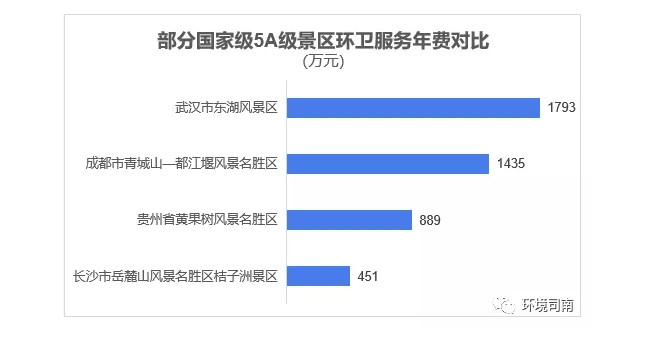 除了旅游度假區(qū),數(shù)千家國家級旅游景區(qū)也在步入環(huán)衛(wèi)市場化的大潮。如杭州市西湖風景名勝區(qū)、貴州省黃果樹風景名勝區(qū),成都市青城山—都江堰風景名勝區(qū)、長沙市岳麓山風景名勝區(qū)、武漢市東湖風景區(qū)等5A級景區(qū),先后對環(huán)衛(wèi)作業(yè)實行市場化改革。據(jù)統(tǒng)計,截止2017年9月份,全國共有5A級景區(qū)259家,4A級景區(qū)2000多家,4A級以下景區(qū)多達數(shù)萬家。