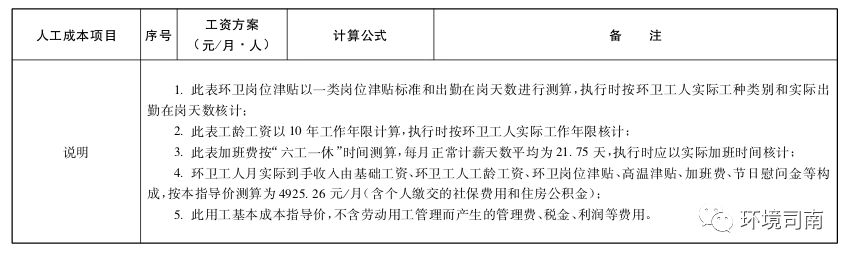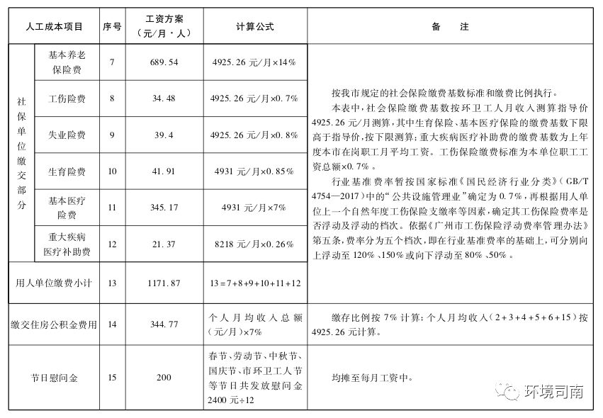 (二)環(huán)衛(wèi)用工成本指導(dǎo)價(jià)包括基礎(chǔ)工資、環(huán)衛(wèi)崗位津貼、環(huán)衛(wèi)工人工齡工資、高溫津貼、加班或者延長工作時(shí)間工資、國家法定節(jié)日和市環(huán)衛(wèi)工人節(jié)慰問金、社會保險(xiǎn)(單位繳納部分)、住房公積金(單位繳納部分)8個(gè)部分,其他項(xiàng)目按照現(xiàn)有的法律、法規(guī)執(zhí)行。
