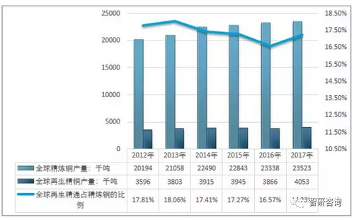 原標(biāo)題:全球銅資源概況及廢銅回收市場(chǎng)分析:2017年再生銅產(chǎn)量超過(guò)400萬(wàn)噸(金屬量)【圖】