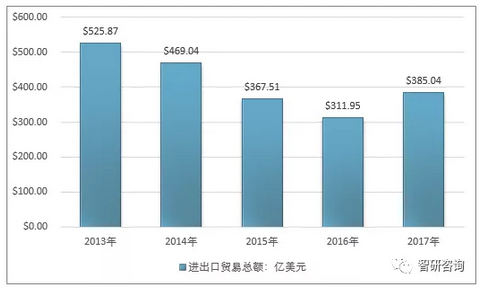 2013-2017年全球廢銅(HS:7404)進(jìn)出口貿(mào)易總額走勢(shì)圖